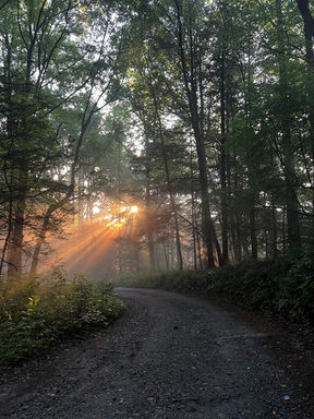 I always enjoy riding into daylight. The sun rising got my circadian rhythm back on track, and my energy levels rose, despite my inadequate caloric consumption. 35 miles to go ... I got this! I began visualizing the remaining miles in sections. Just focus on getting to the piped spring at Jack's River. And so I did, not letting the 3 or 4 grunty kickers knock me off my mental game. I saw the stack of deadwood we had set out earlier, so I stopped and refilled my bottles here. That water was cold and tasty.