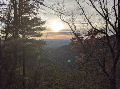 We left the Lake together but quickly separated again on the next small climb. After a couple short climbs & descents, the gravel road met Citico Creek then ran along its bank for several miles. In my opinion this was hands down the most enjoyable section of the ride. The gentle descent through the picturesque forest along the winding, roaring river was an absolute blast. This quickly changed after the right turn onto Doublecamp Creek Rd. This climb felt considerably rougher than anything on the route up to that point, and it became considerably steeper as it went on. I reached the top at around 6pm, then cautiously rode the descent down Cold Spring Rd back to Citico Creek. High, thin clouds in the west produced a colorful sky as the sun began to set during the descent, which was just smooth enough to be pleasant and not require excessive braking. Luke caught me again before the bottom, and we rode the next few miles together. After the descent, the route rejoined Citico Rd and wound along Citico Creek for a few more miles. It was dark enough to require use of lights by the time we started the last few climbs of the day. Several of the roads in this section were in very rough shape, with downed trees, large rocks, & occasional deep puddles and ruts. Descents had to be taken with extreme caution. I started to fall behind on nutrition during the last few sharp climbs & descents but was able to press through without major problems. I reached the Turkey Creek area at around 7pm, by which point the last bit of twilight had vanished and a gibbous moon had risen. Luke caught & passed me shortly thereafter. The last few miles transitioned into smooth, relatively flat gravel roads. I struggled with the cold a bit here as the temperature dropped back into the low 40s F. The final couple miles wound downstream along the Tellico River; the sounds of the roaring river created a very neat atmosphere at night. I reached the Oosterneck overlook at around 7:50pm, for a total ride time of just over 10 hours.